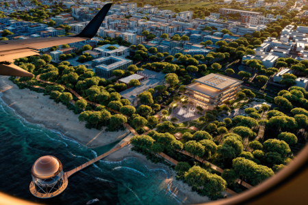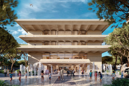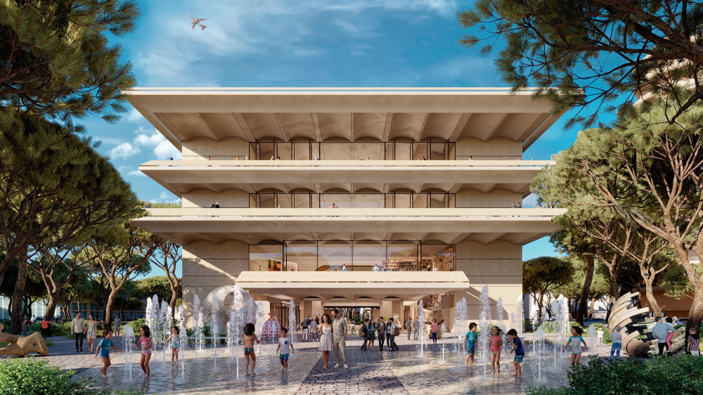Larnaca Arts & Cultural Centre, located in Oroklini, Larnaca. The mixed-use development is nestled into the centre of the Land of Tomorrow Masterplan area. The development will cover an area of approximately 4,244 square meters. It will consist of basement services and storage, ground floor parking spaces, a ground floor area and three floors of multi-use spaces including a 600-person venue, restaurants, shops offices, workshops, a library and other cultural spaces.